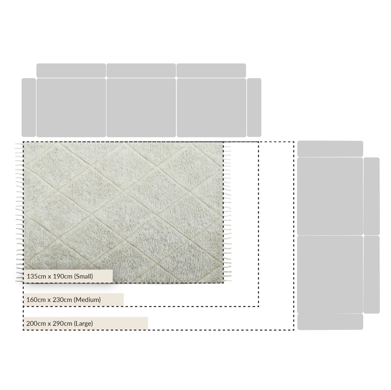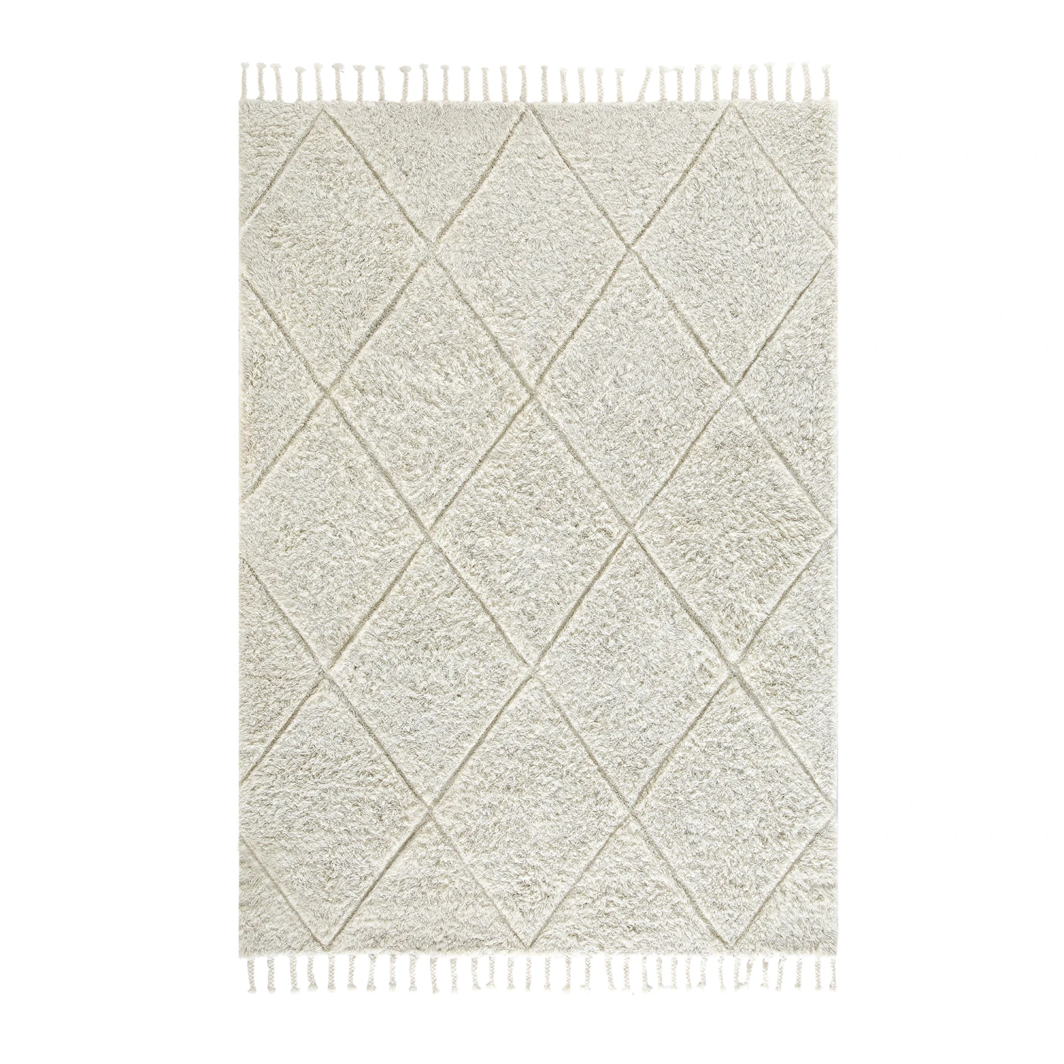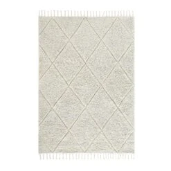 Designed with a sophisticated neutral color palette, the Lexi rug features a striking 3D effect. By combining a dense 6mm low-pile base with a plush 20mm high-pile diamond motif, the pattern physically stands out, offering a thick, fluffy sensation underfoot. Each rug is finished with hand-plaited tassels, emphasizing its authentic, handcrafted origin and adding a touch of bohemian character to its modern silhouette.