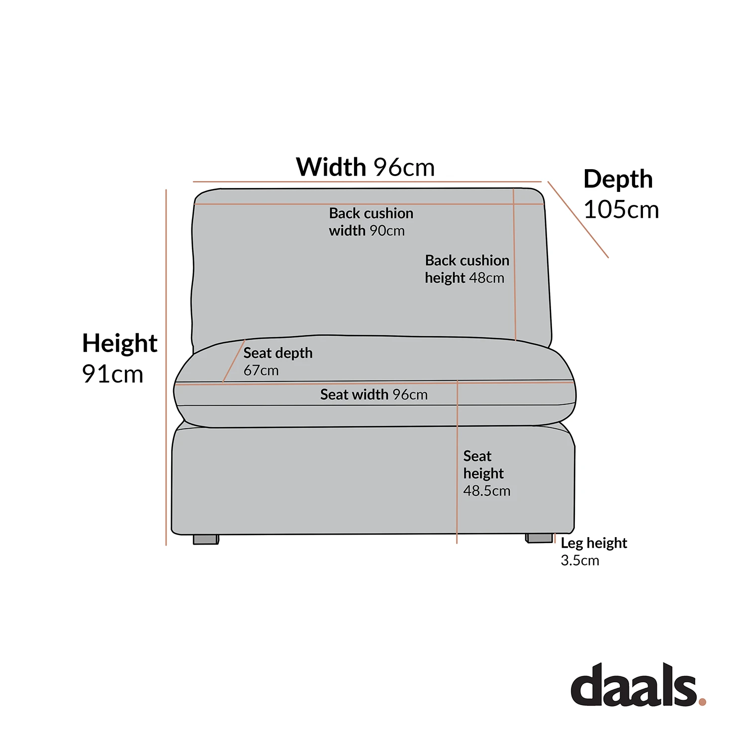 - 1-Seater sofa module size: W 96 x D 105 x H 91 cm.