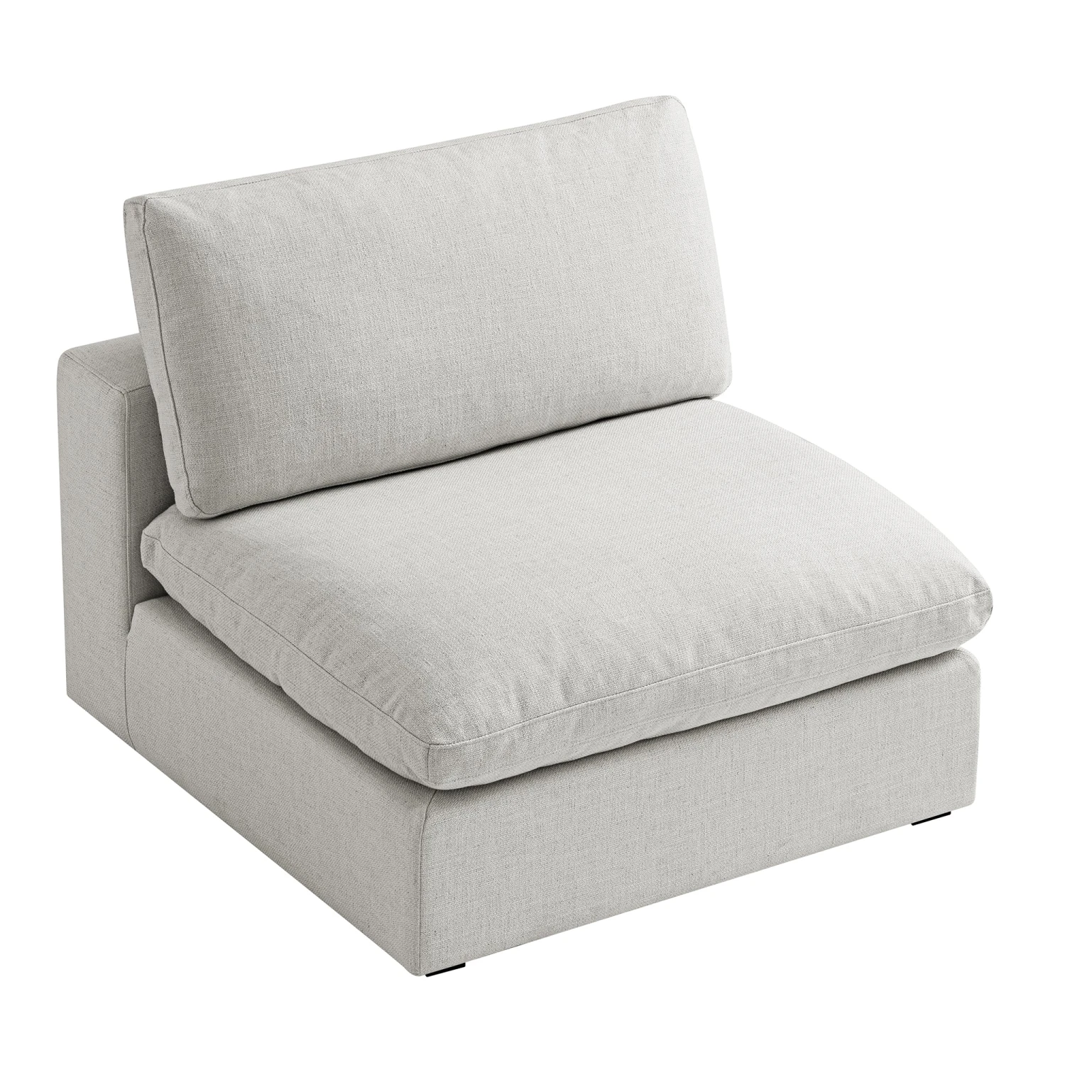 - Complete the look:ย Pictured with our Lutyens Light Grey Linen Blend Armless Sofa is our Avanti Salt and Pepper Diamond Bobble Round Rug and our Bronte Collection Patchwork Cushion