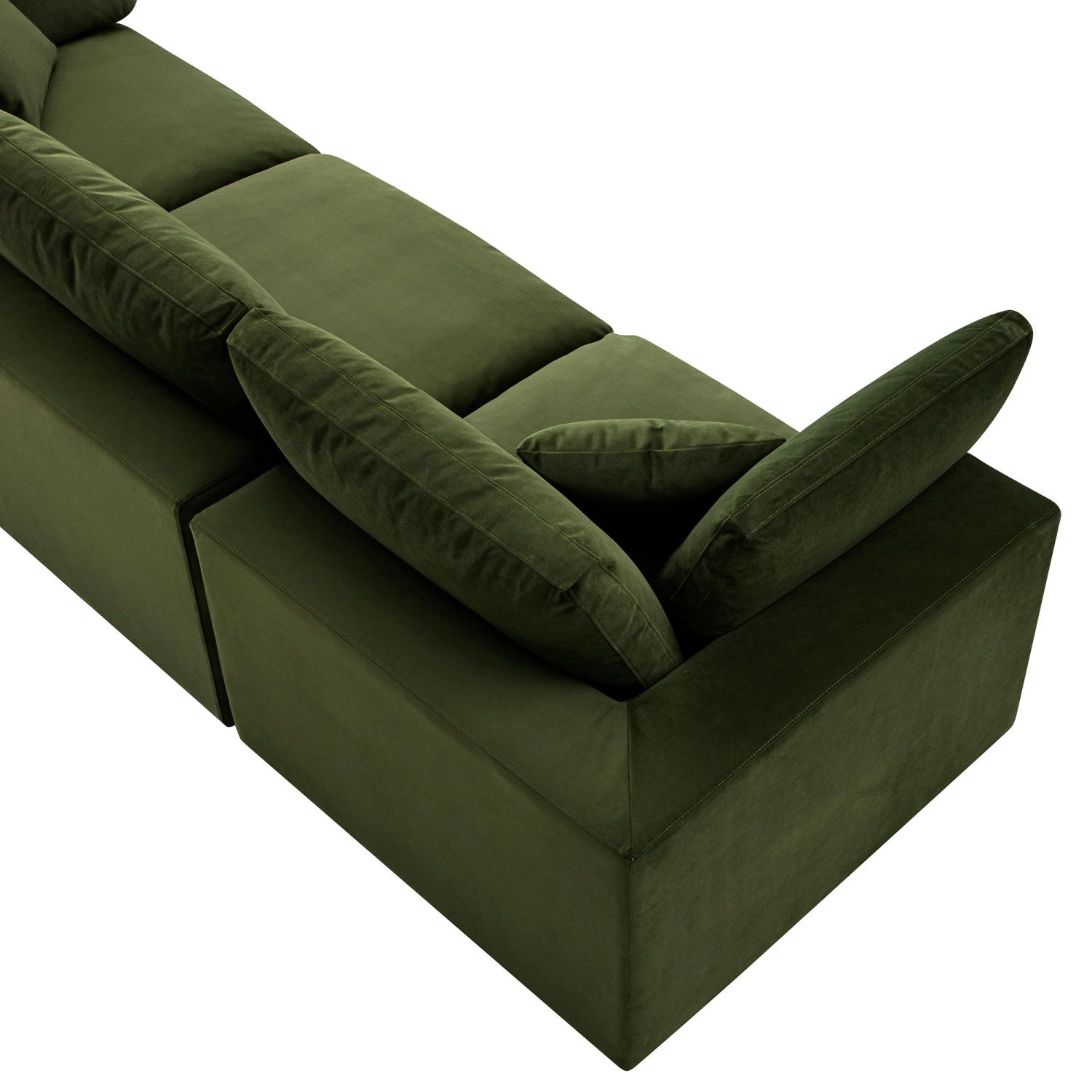 - The extra deep-seated sofa modules offers sink-in comfort with all cushions filled with soft goose feather and polyfibre wrapped around premium foam core.