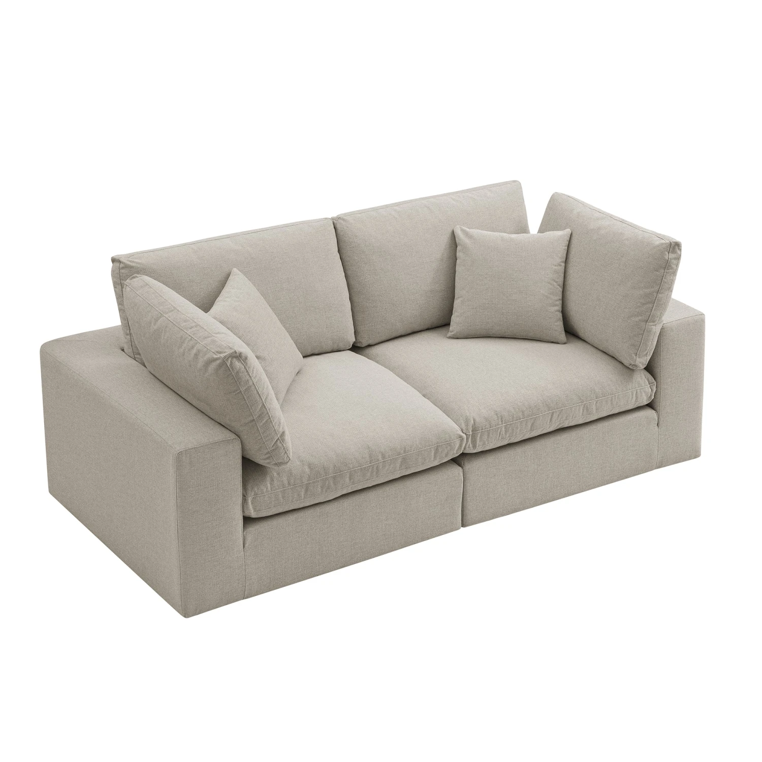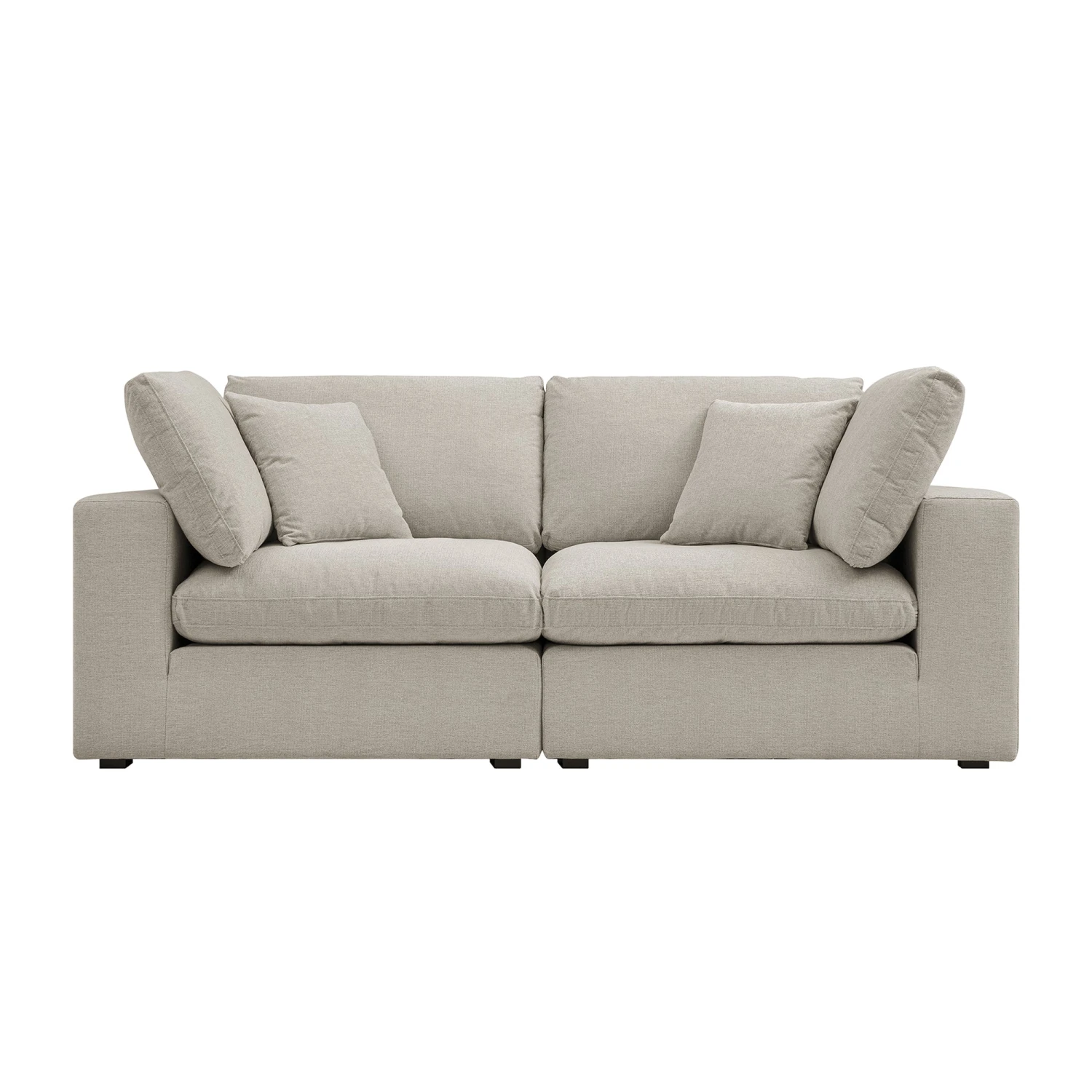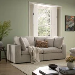 - Complete the look:ย Pictured with our Lutyens Oatmeal Weave 2-Piece Modular Sofa is our Aurora Hand Braided Cream Jute Rug and our Botanica Collection Apricot Velvet Cushion