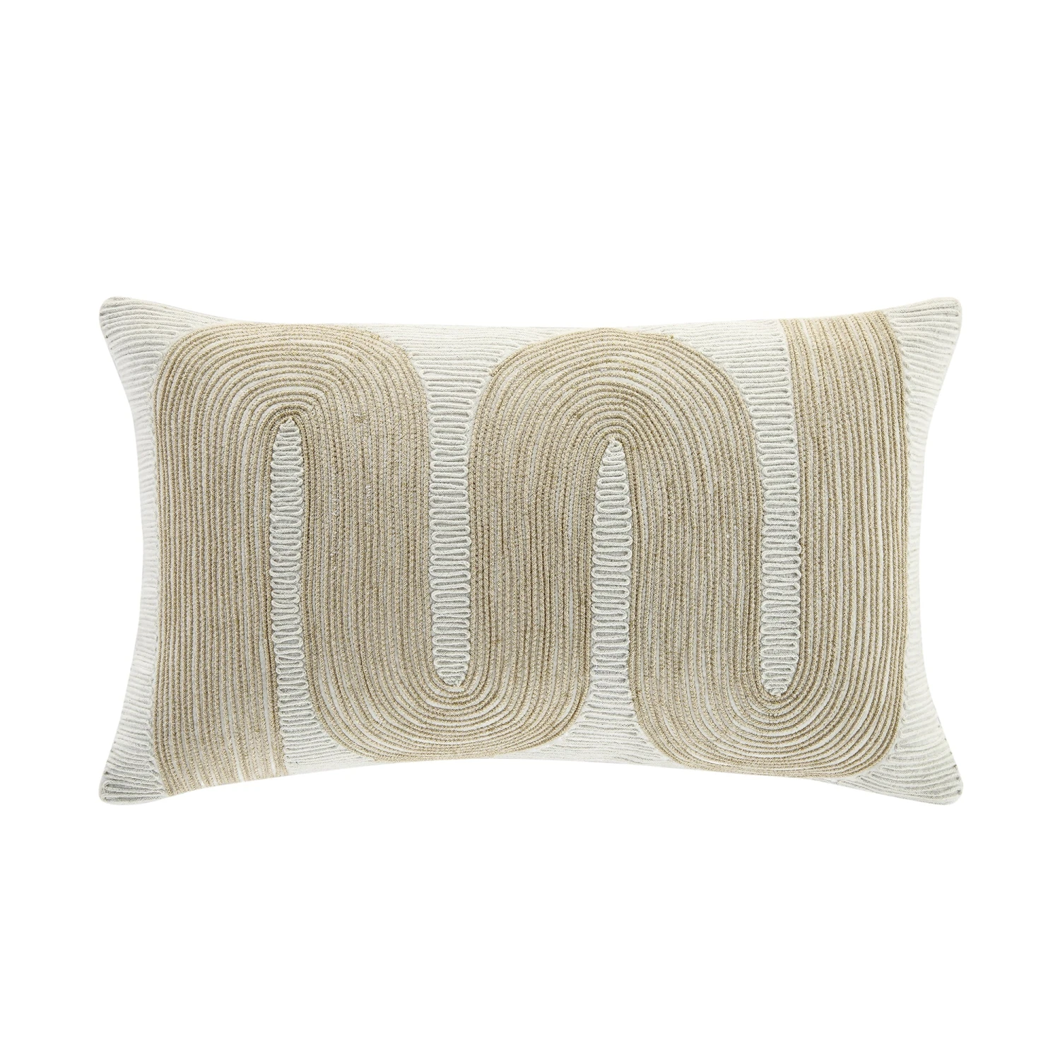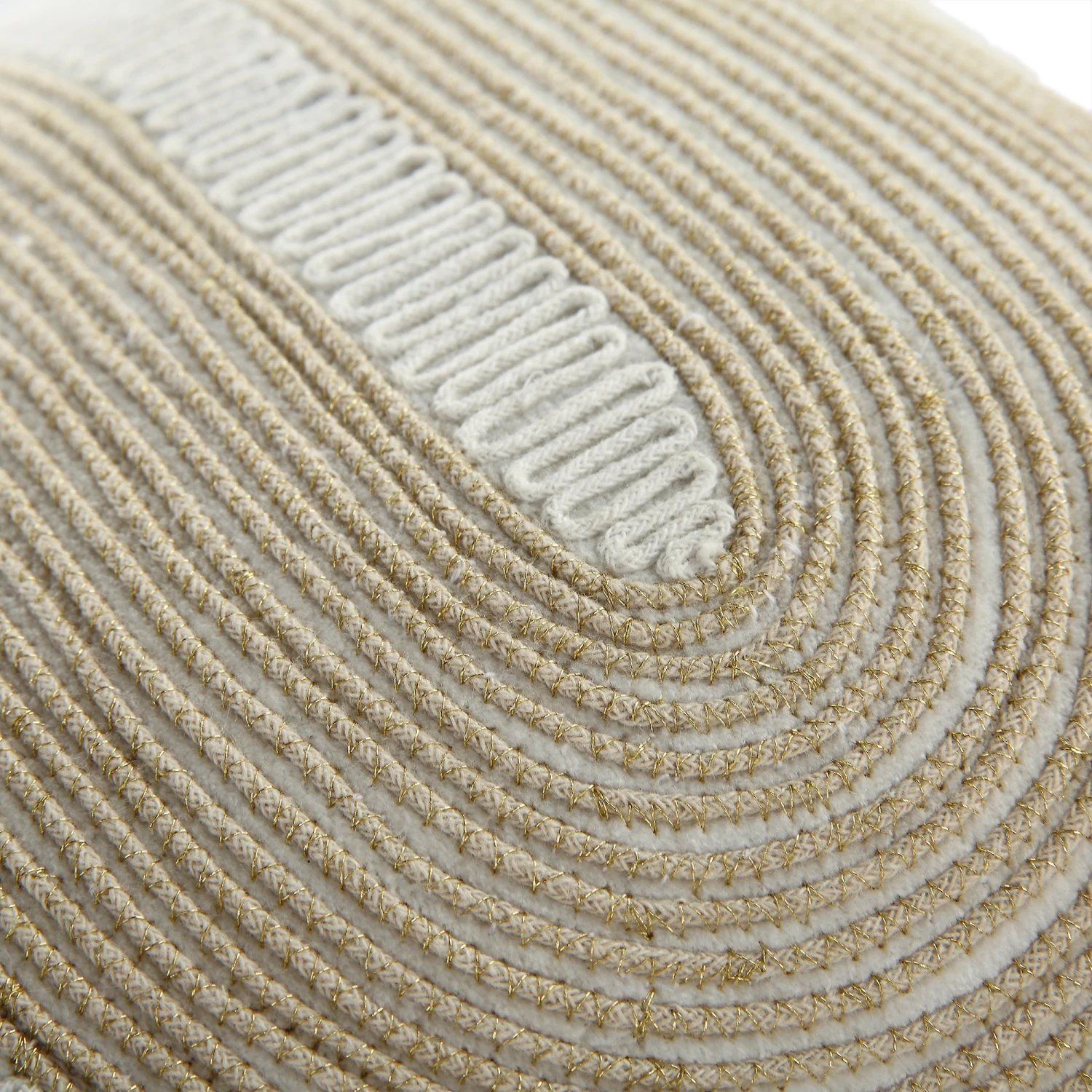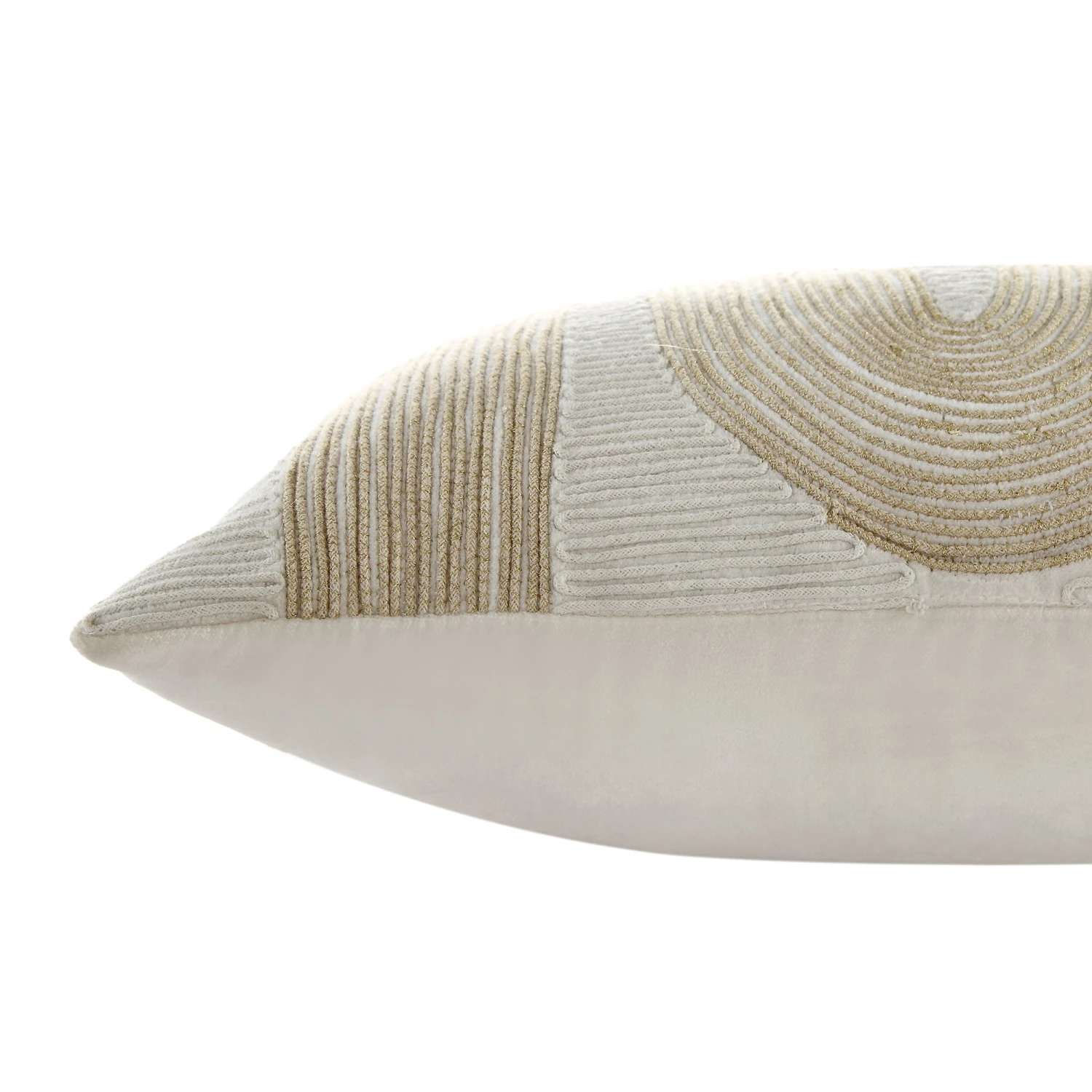 Indulge in the artisanal beauty of the Odilla cushion, a unique piece handmade in India designed to bring a touch of luxury to your home. This cushion is crafted from sumptuous pearl white velvet and features intricate specialized couching embroidery. The metallic champagne gold zari sparkle cord creates a shimmering geometric effect, making it the perfect solution for sophisticated glam dΓ©cor.