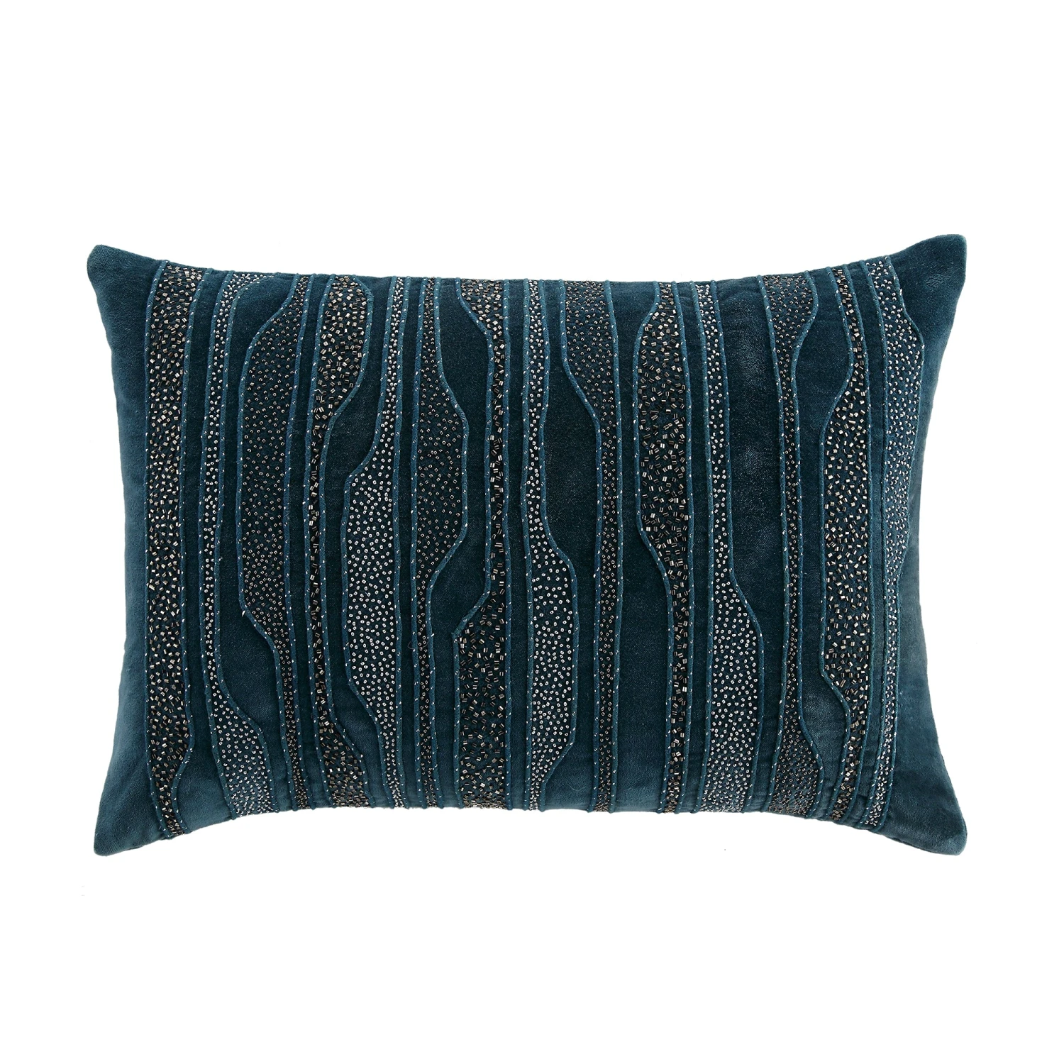 This exquisite cushion is crafted from premium teal pure cotton velvet, providing a rich, deep base for the intricate hand-applied silver metallic beadwork. The central circular motif draws inspiration from traditional mandala patterns, creating a shimmering focal point that catches the light beautifully against the plush velvet texture. The reverse features a matching plain teal cotton velvet for a clean, cohesive look.