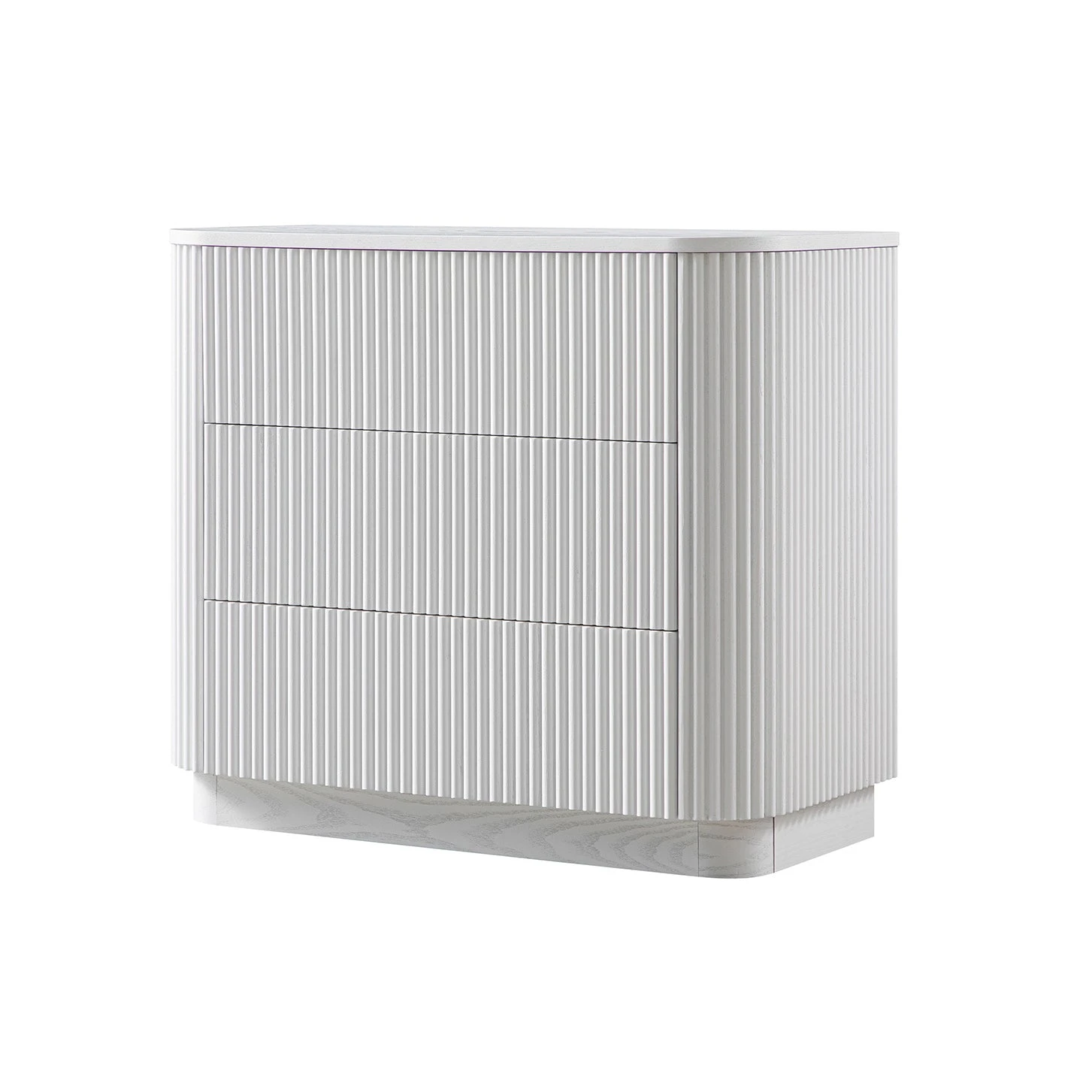 - Elevate your bedroom or hallway with the sculptural calm of the Maru Chest of 3 Drawers in Washed White.