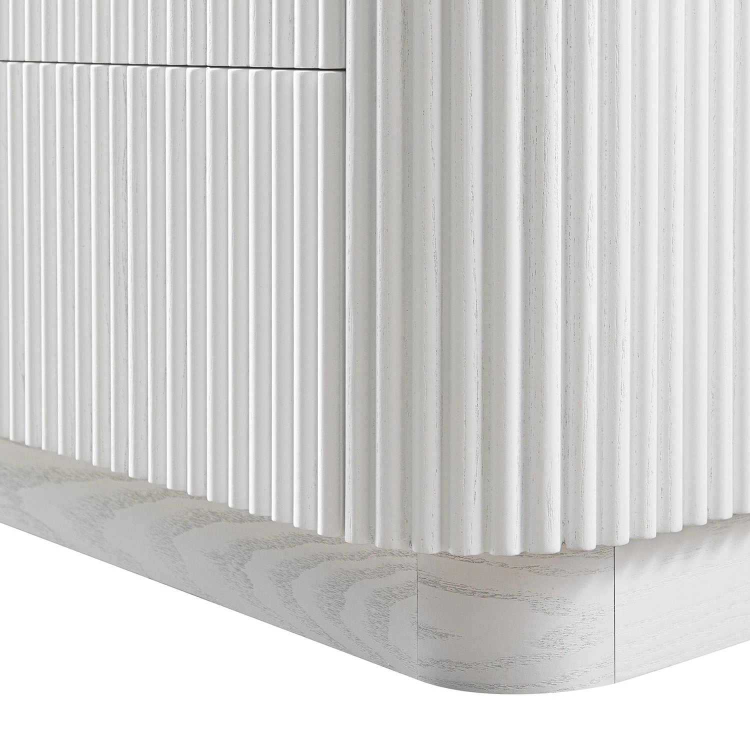 - Defined by its soft, matte white finish over a genuine ash grain, this chest blends crisp linearity with natural texture, creating a clean, contemporary feel that remains warm and grounded.