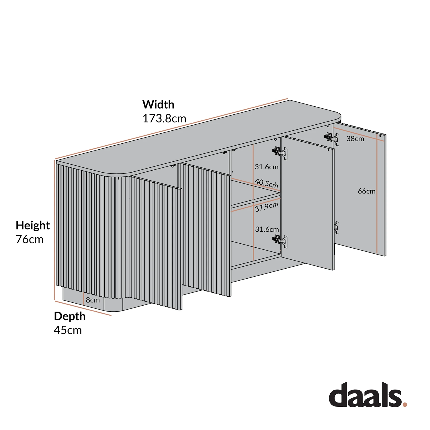 - At over 173 cm wide, this sideboard is perfectly suited for dining rooms or living spaces where storage meets statement.