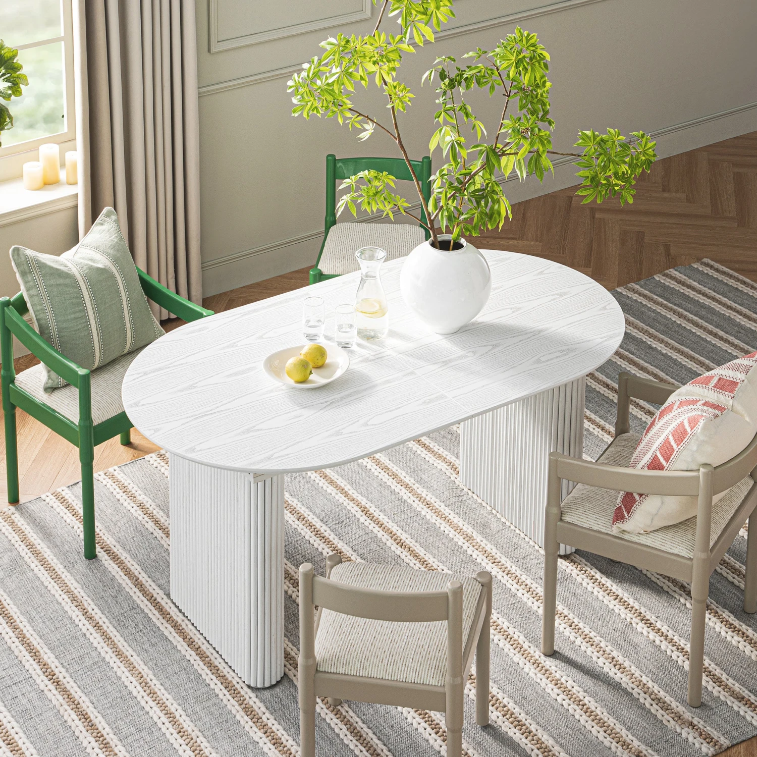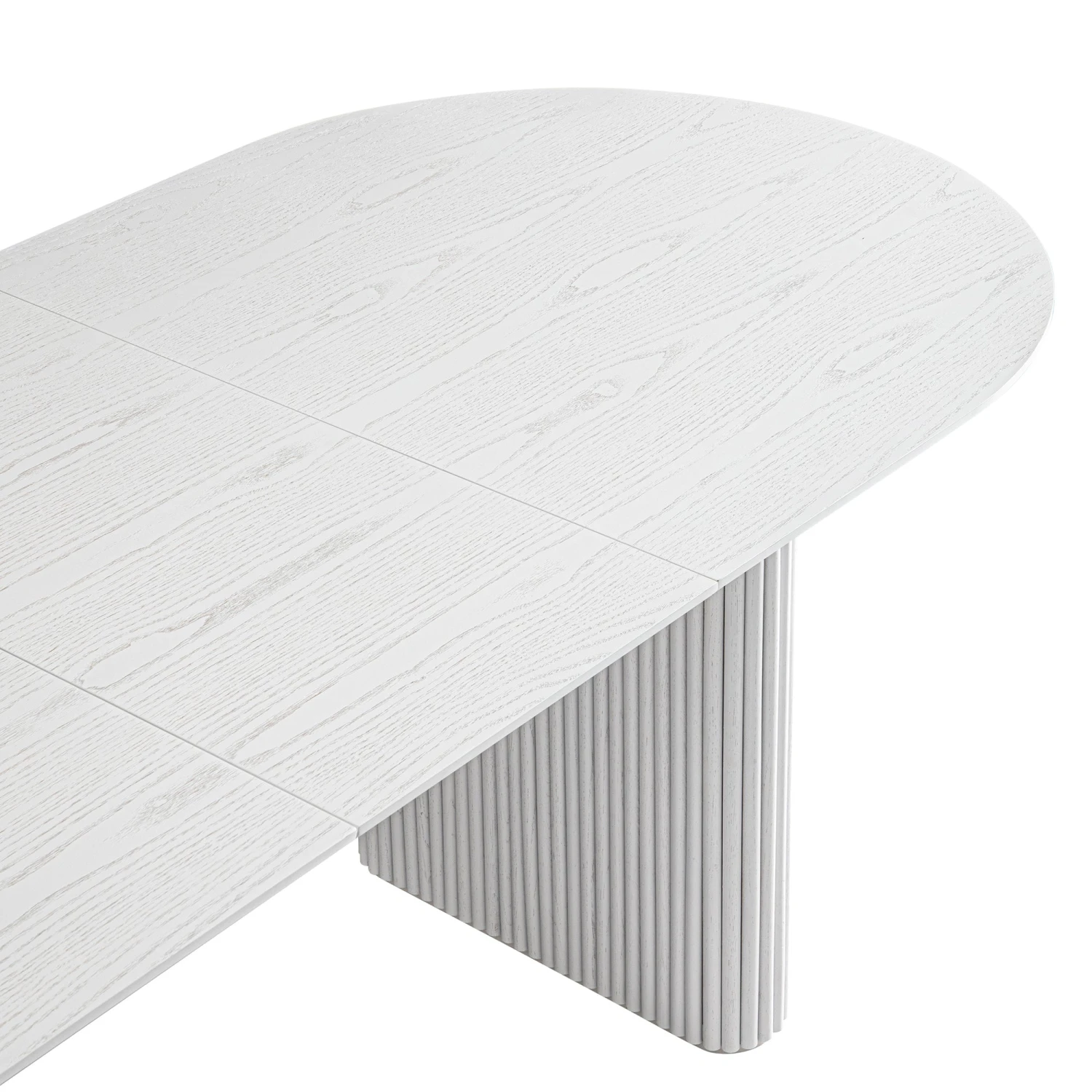 The Maru Oval Extending Dining Table is a masterclass in modern design, blending Japanese minimalism with Scandinavian warmth. Crafted with a stunning washed white finish, this table serves as a bright, organic centerpiece for your dining room, perfect for everything from quiet family meals to festive gatherings.