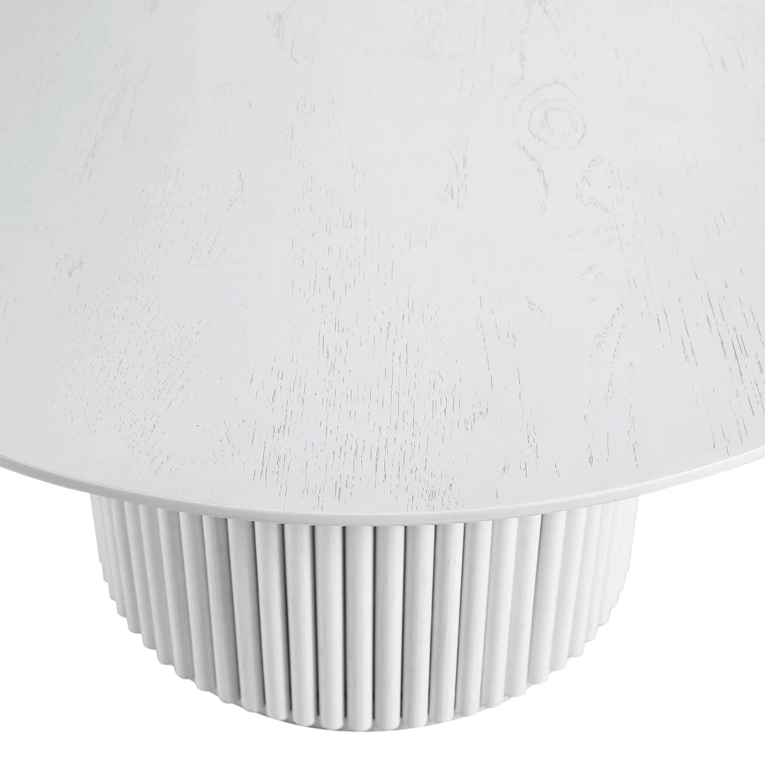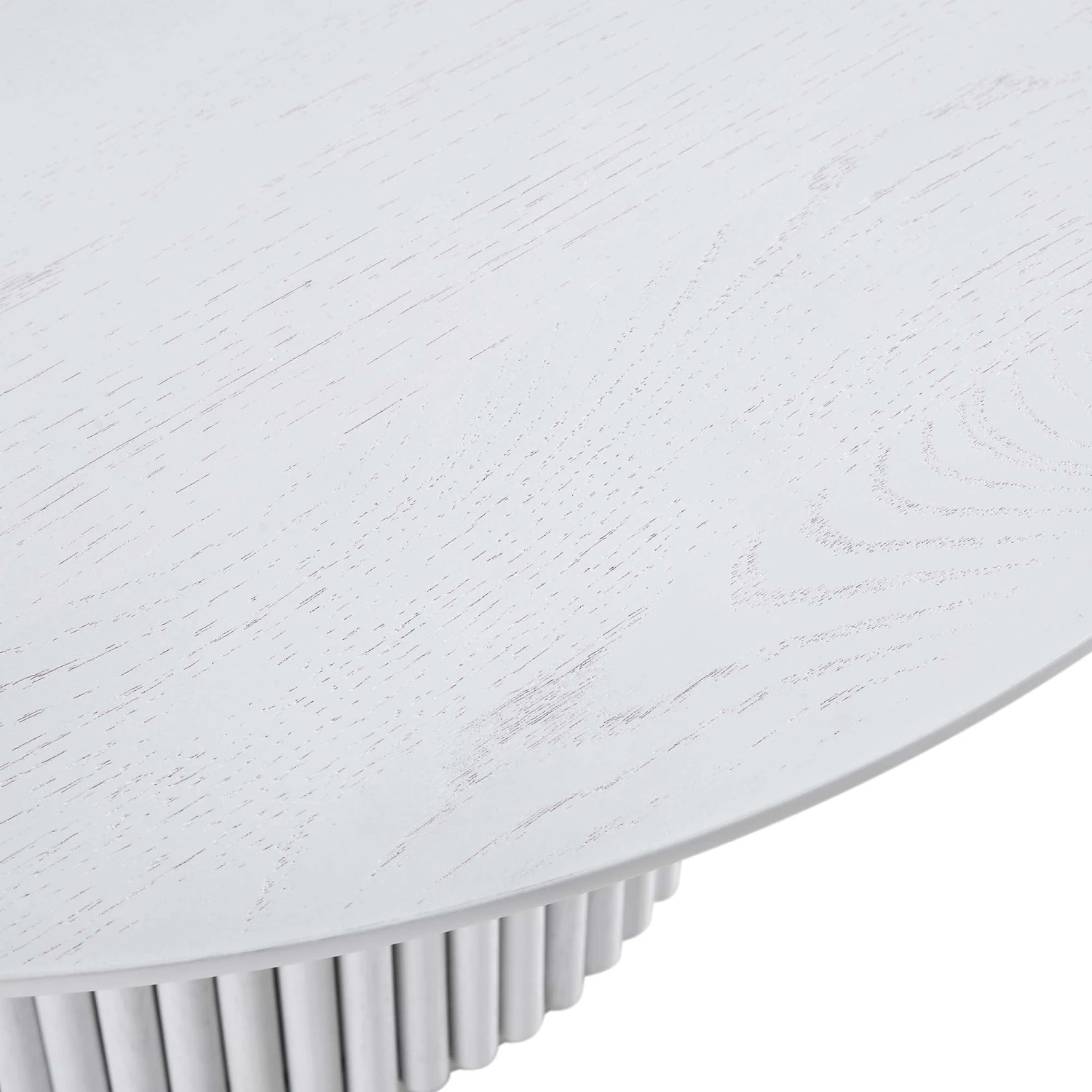 - Crafted from solid and and oak veneer and washed white matte paint, each table has its unique natural grains and knots.