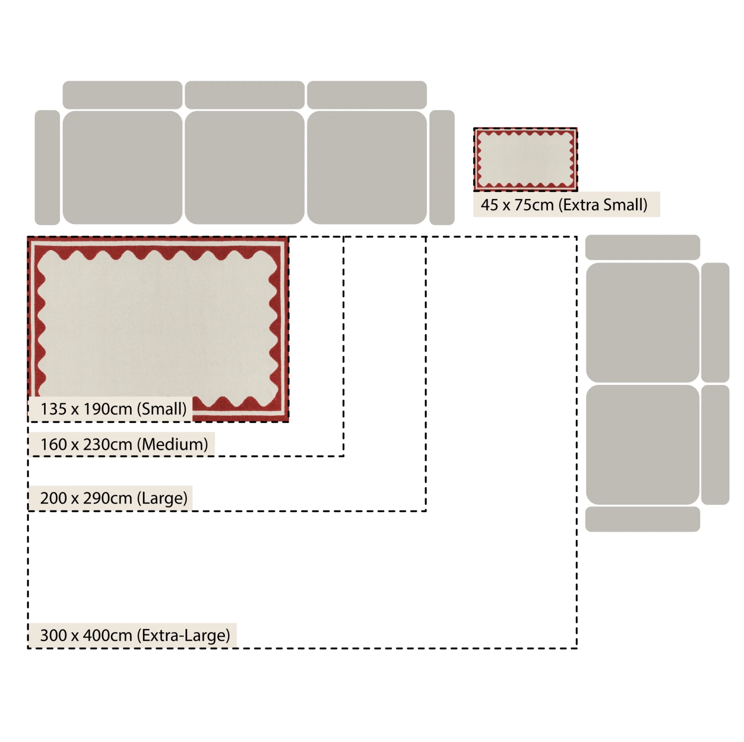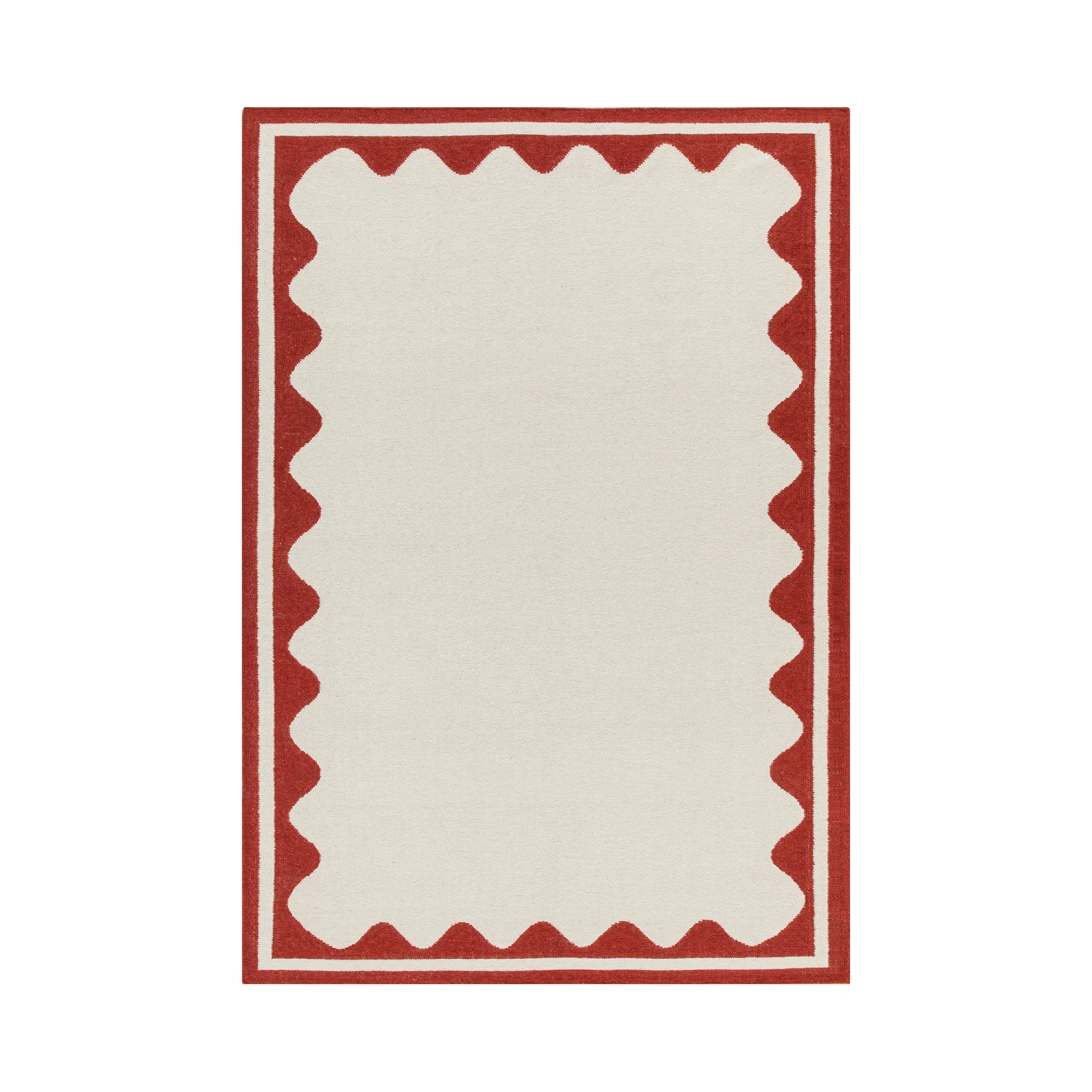 Add a bold, playful energy to your home with the Matilda Scallop Border Handwoven Rug. Featuring a striking scarlet red wavy edge against a minimalist cream background, this rug serves as a sophisticated focal point that frames furniture beautifully. Each piece is bespoke, handcrafted by local artisans in India using traditional weaving techniques that ensure your rug is truly one-of-a-kind.