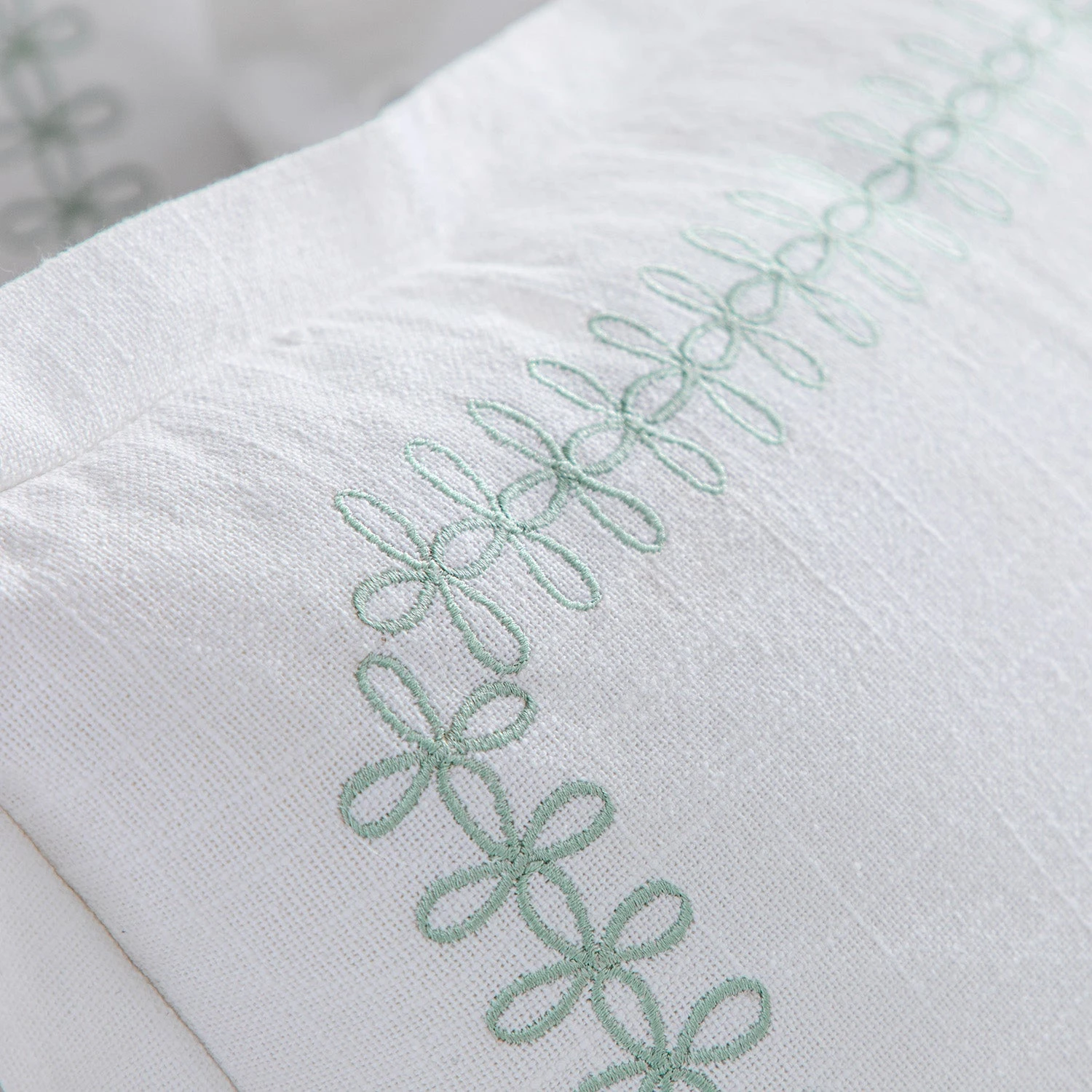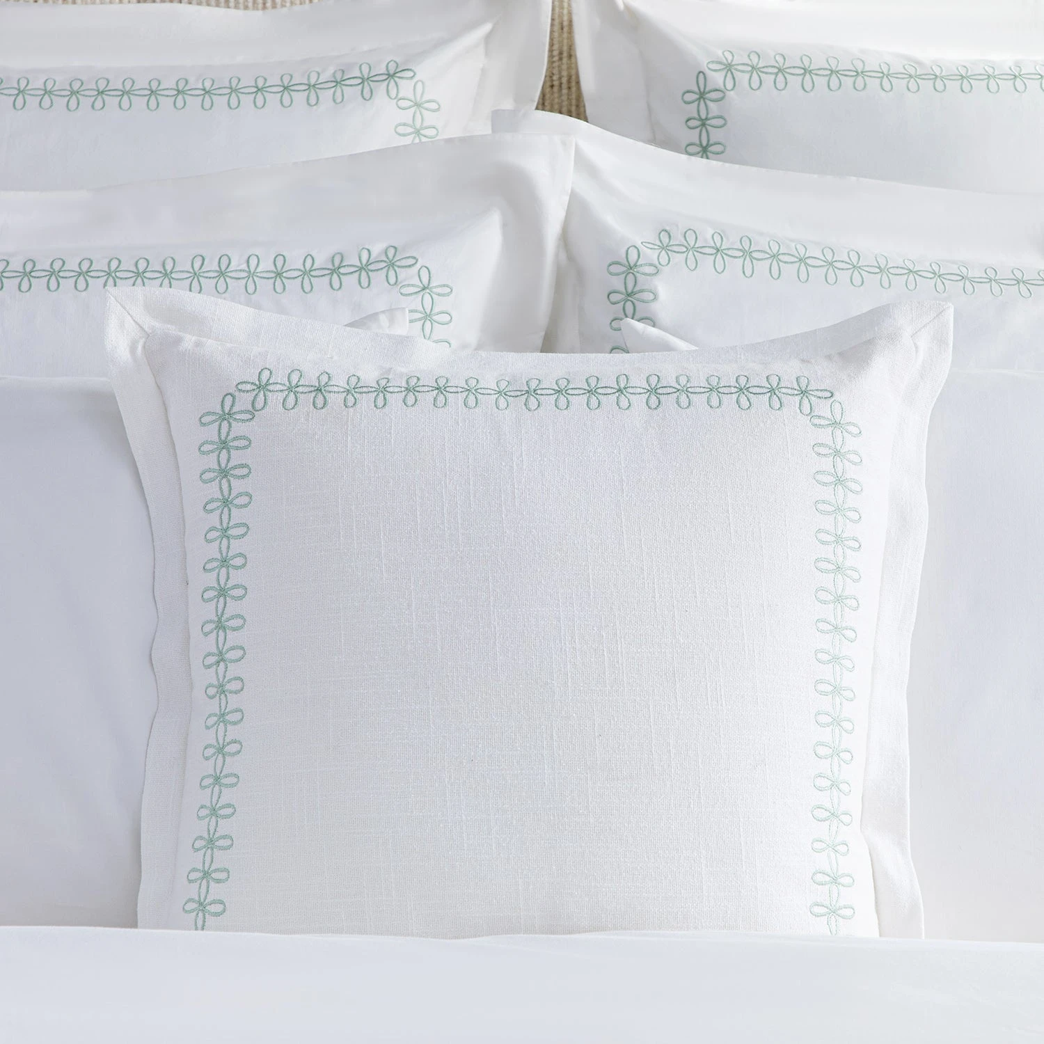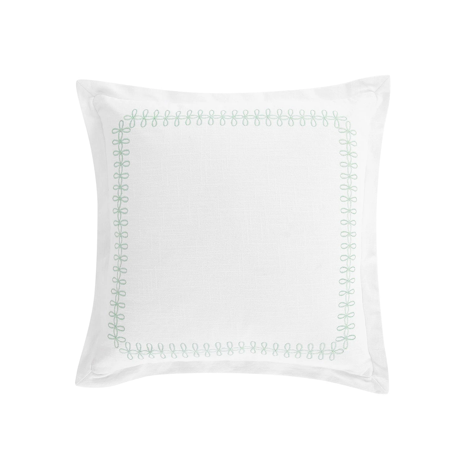 - Intricate Embroidery: Features a classic knot-style border in a serene sea spray green.