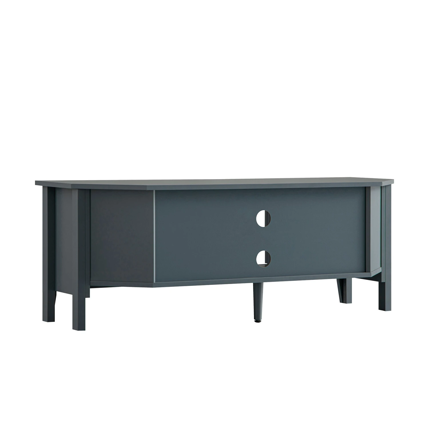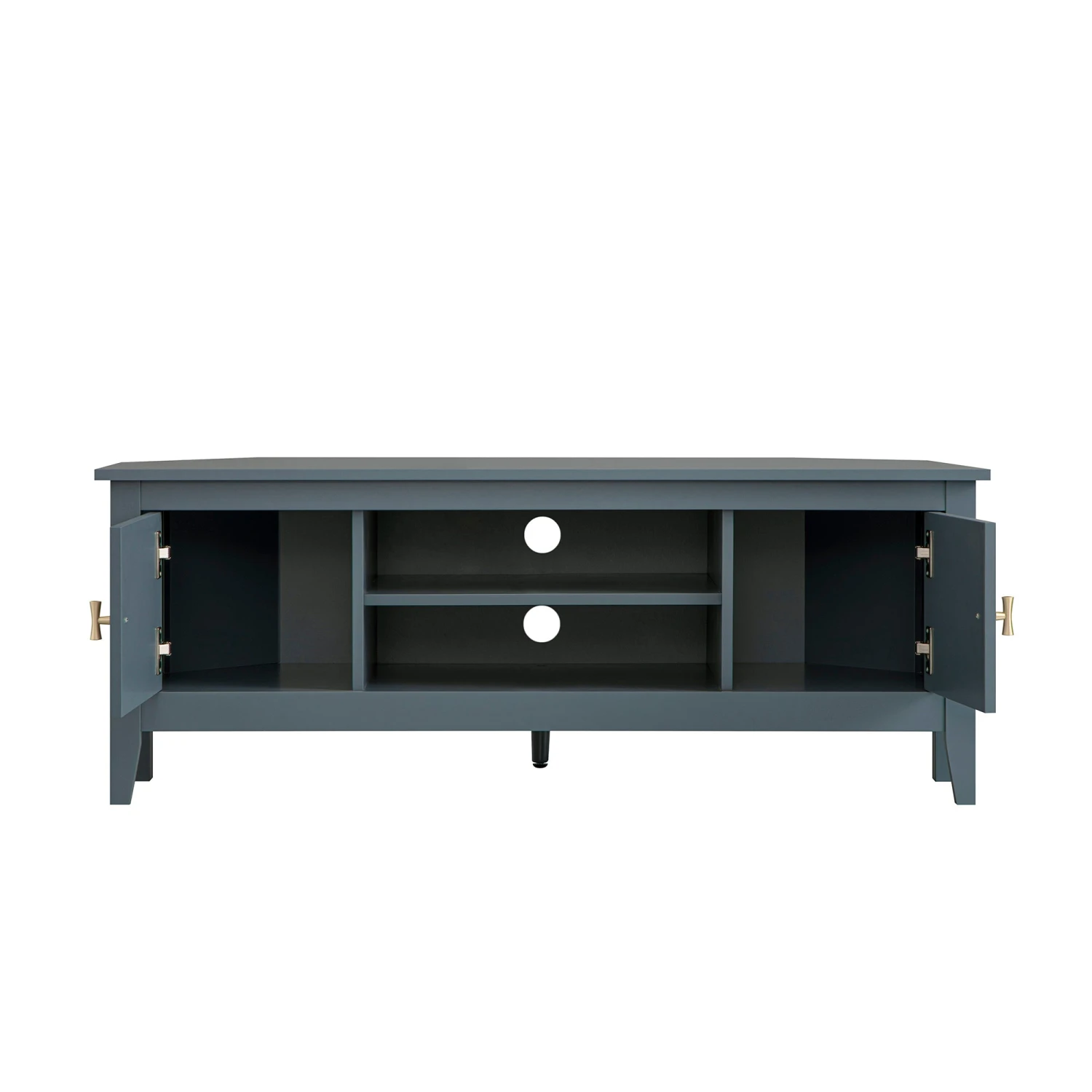 Maximize your living area without compromising on style. The Oakham 120cm Corner TV Unit is masterfully designed to tuck into any corner, providing a sophisticated focal point for your lounge. Finished in a deep, slate-toned Stormy Blue matte paint, this unit offers a moody elegance that perfectly contrasts with modern interiors.