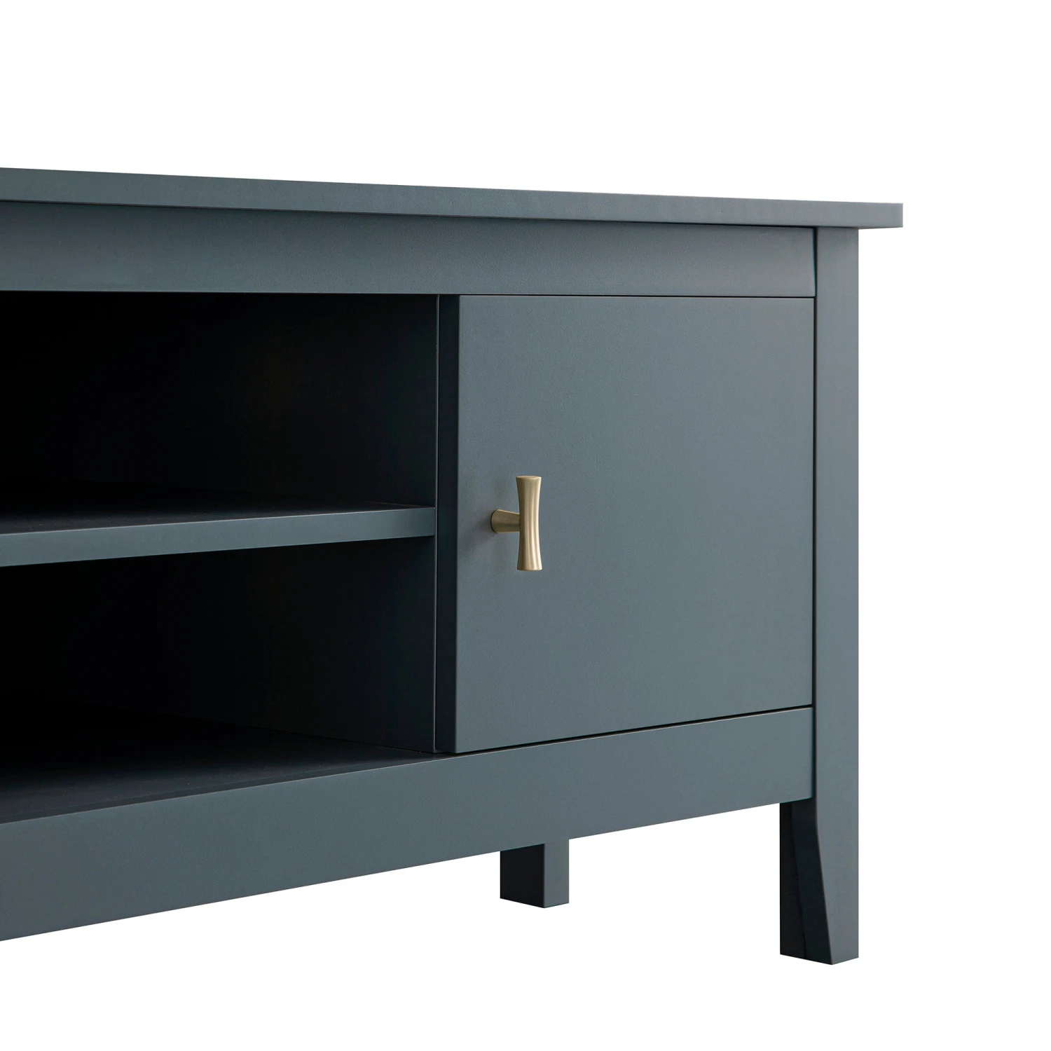 This piece features a stunning combination of deep blue cabinetry and luxurious gold-effect handles. The tapered legs provide a contemporary lift, while the clean lines ensure it fits seamlessly into both classic and modern homes. Specifically designed for screens up to 55 inches, it balances form and function with ease.