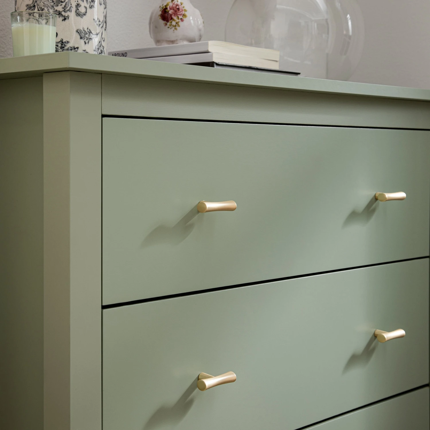 - Complete the look:ย Pictured with the Oakham Desert Sage Chest of 4 Drawers is our Fitz Sage Striped Skirted Armchair,ย Atlan Cream & Taupe Handwoven Wool Rug and Pembroke Stripe 100% Linen Green Cushion.