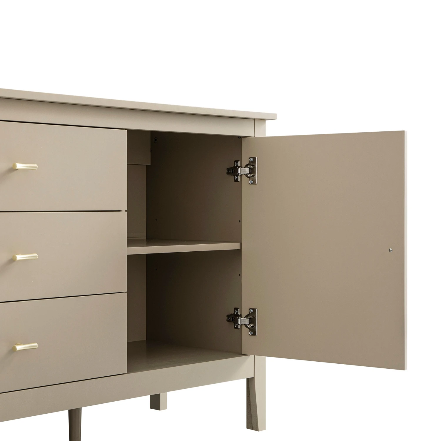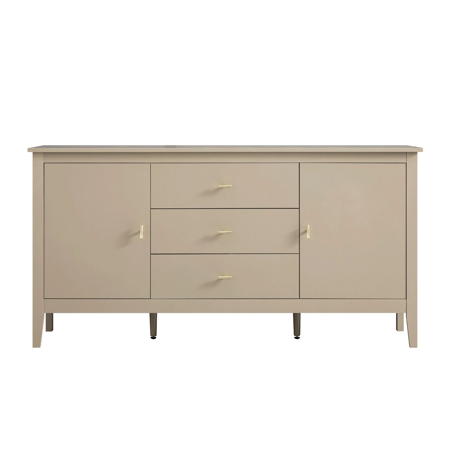 - With its clean-lined silhouette and generous 145 cm width, it offers ample storage without overwhelming the room. Behind the soft-close doors, adjustable shelves provide flexible space for everything from tableware to linens, while three central drawers glide open on metal runners, perfect for organising cutlery, stationery, or everyday essentials.