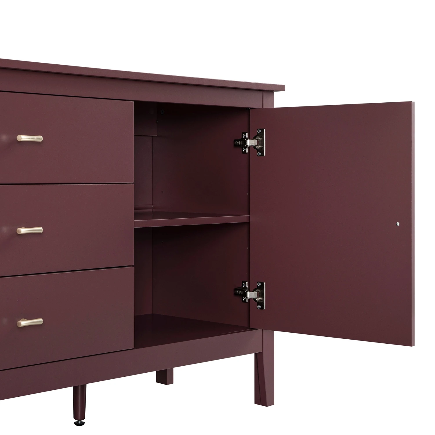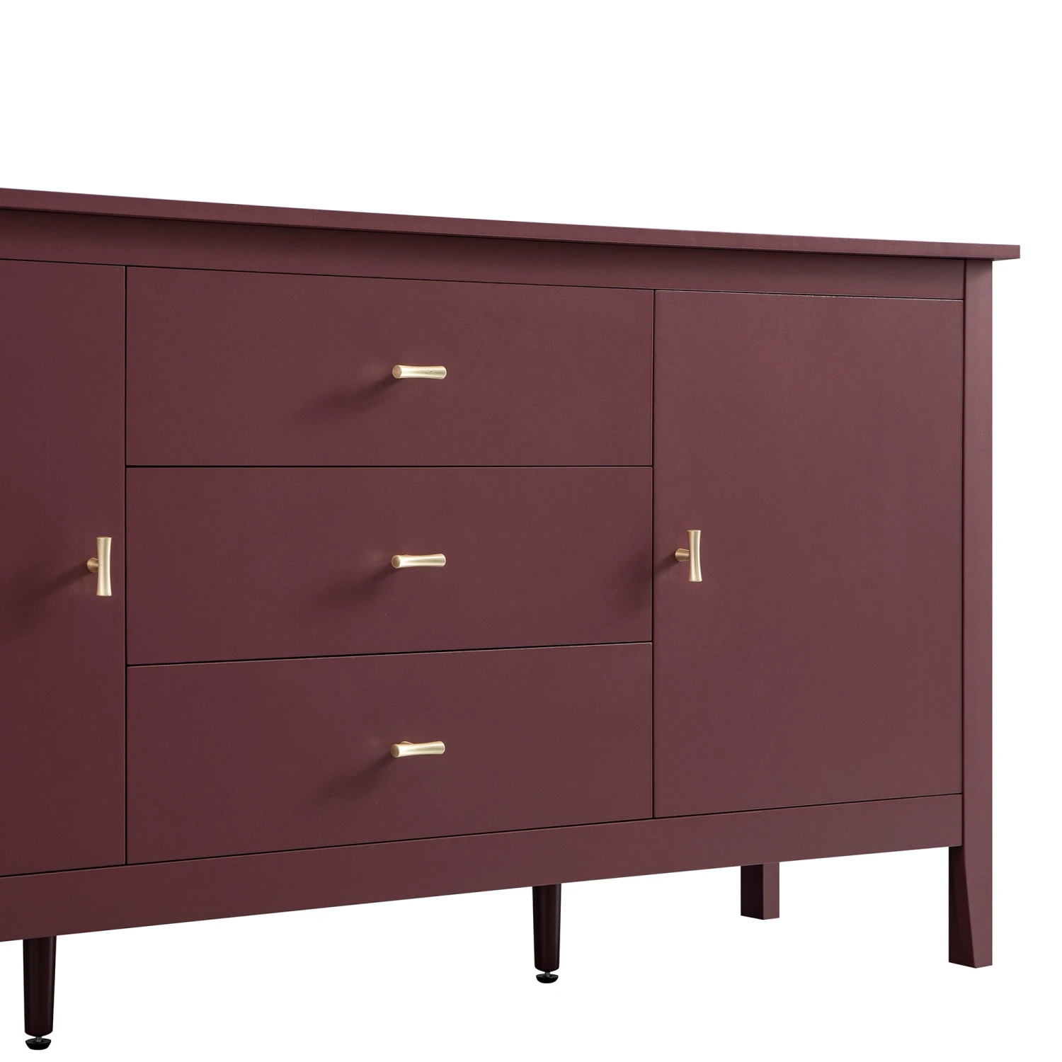 - Its width offers a spacious layout with three central drawers on smooth metal runners, perfect for everyday essentials.