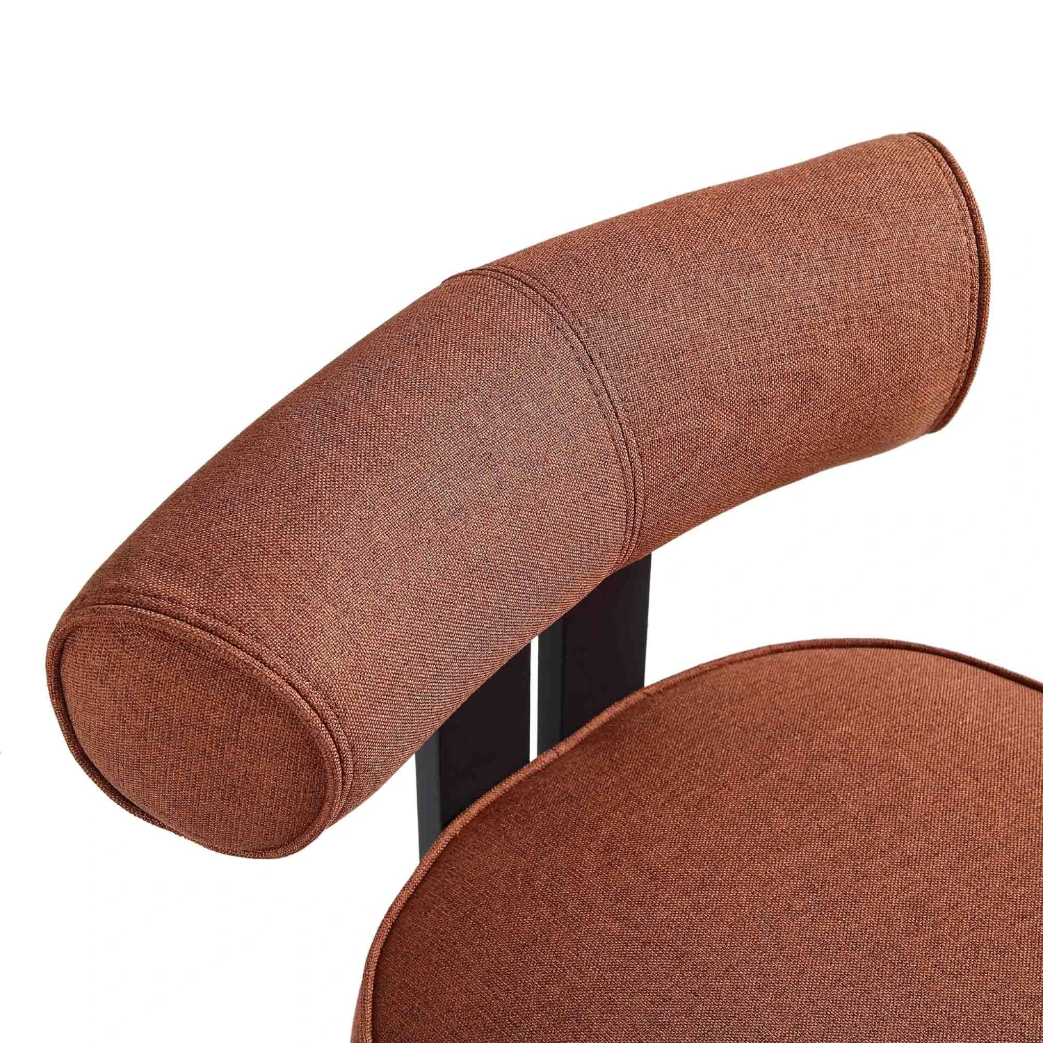 The Ophelia showcases a sophisticated terracotta hue that brings an organic, earthy feel to your room. Its low-profile, subtly curved backrest and armless silhouette offer a clean, unobstructed look, while the thick, well-cushioned seat provides luxurious support. The legs are crafted from durable metal with a sleek matte finish, providing a sturdy foundation with a modern edge.
