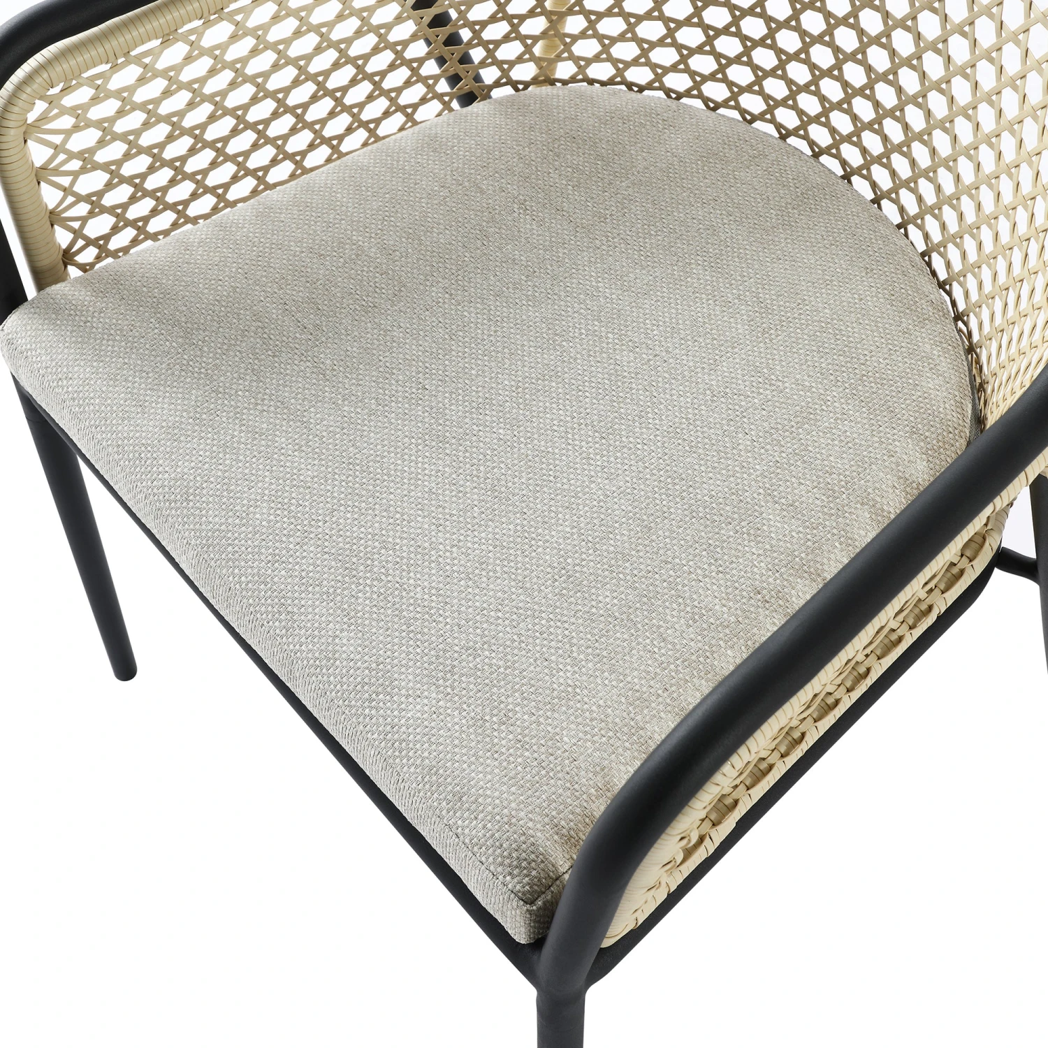 Inspired by the signature features of our indoor range, the Pienza Outdoor Rattan 4-Seater Round Dining Set brings effortless, breezy style to your garden or conservatory. This set centers on the striking contrast between the black powder-coated aluminium frames and the soft, neutral oatmeal upholstery, creating a sophisticated focal point for any alfresco gathering.
