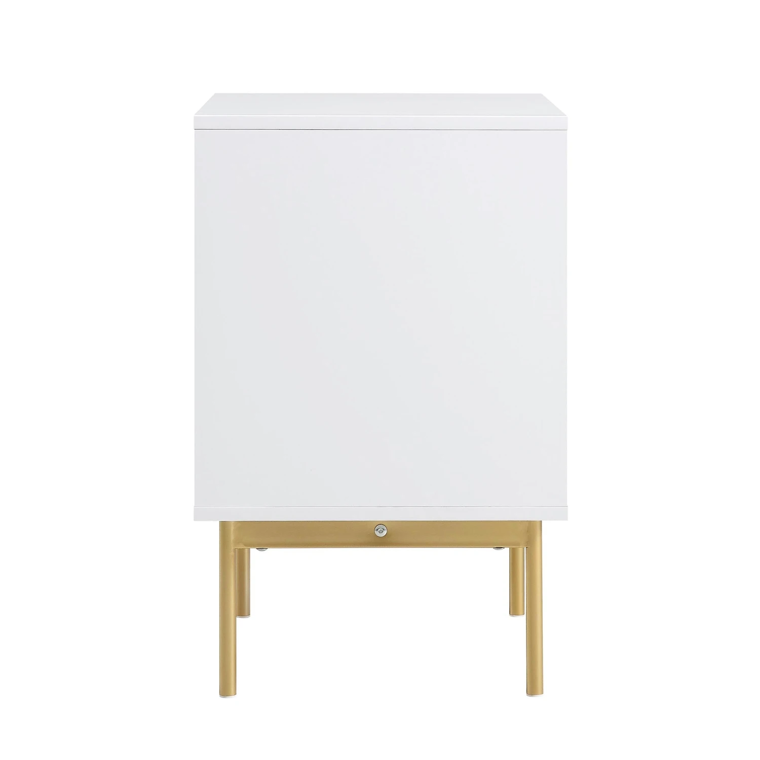- The cabinet features ridged door surface finished in matte white green paint, paired with gold handles and legs.