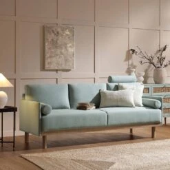 Timber Sage Green Fabric Sofa, Large 3-Seater Chaise Sofa Left Hand Facing