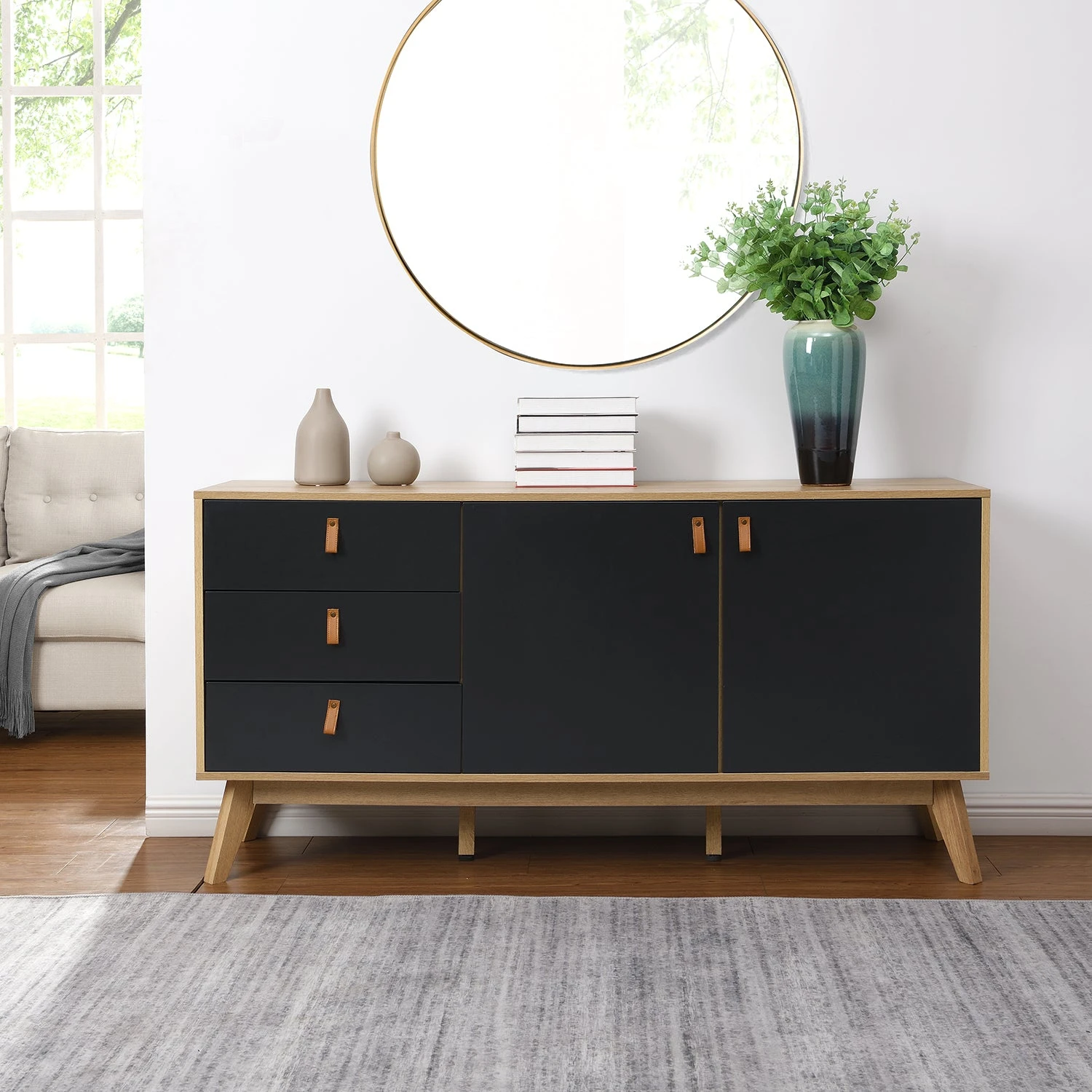 - The sideboard has 2 doors and 3 easy-glide drawers to declutter your living space.
