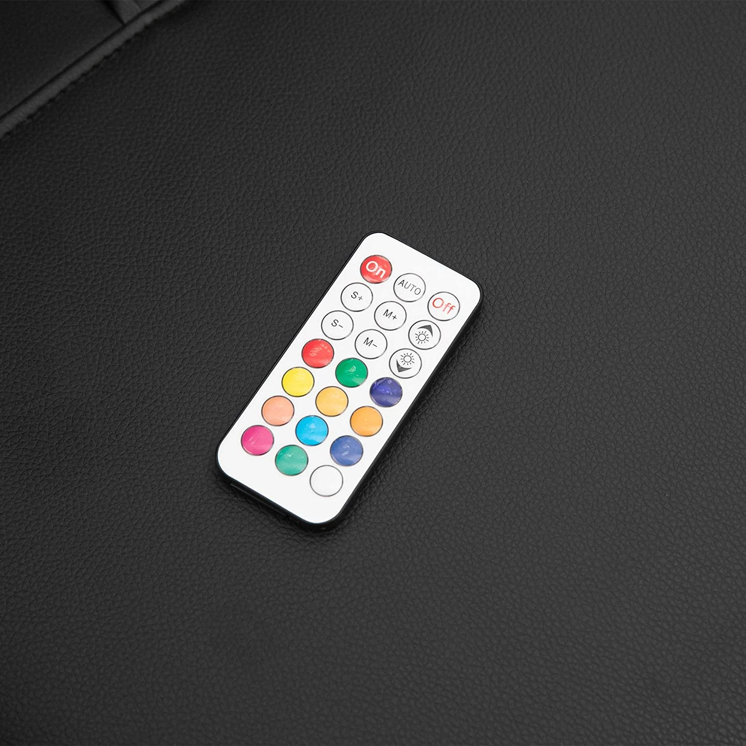 - Fully customisable LED ambient light with handy remote control tucked at the side of the seat. Go for a multi-colour or mono-colour theme as you wish. Please Note:ย the LED light is powered by powerbank (not included) via USB cable. Your powerbank can be easily placed in the pocket at the back of the chair.ย The minimum power supply should be 5V and 2A