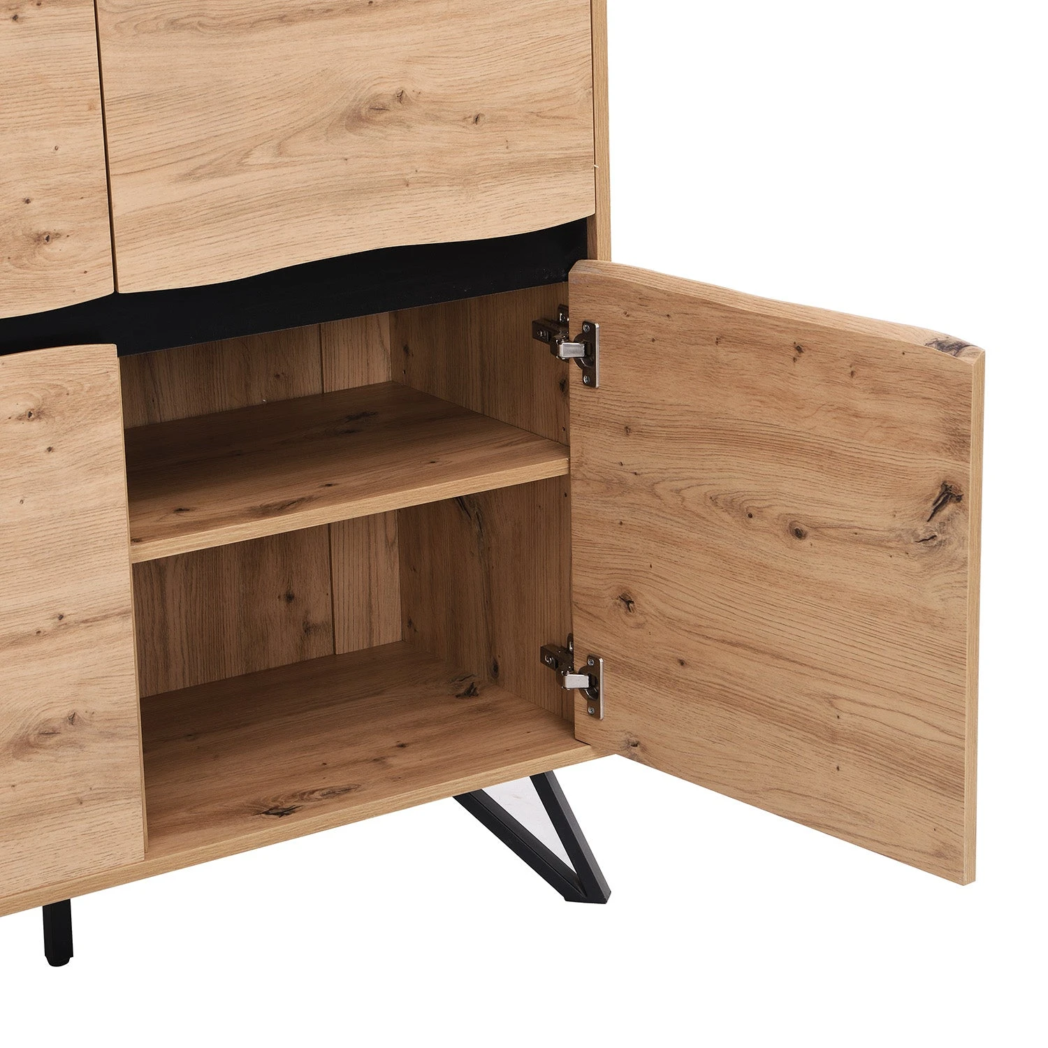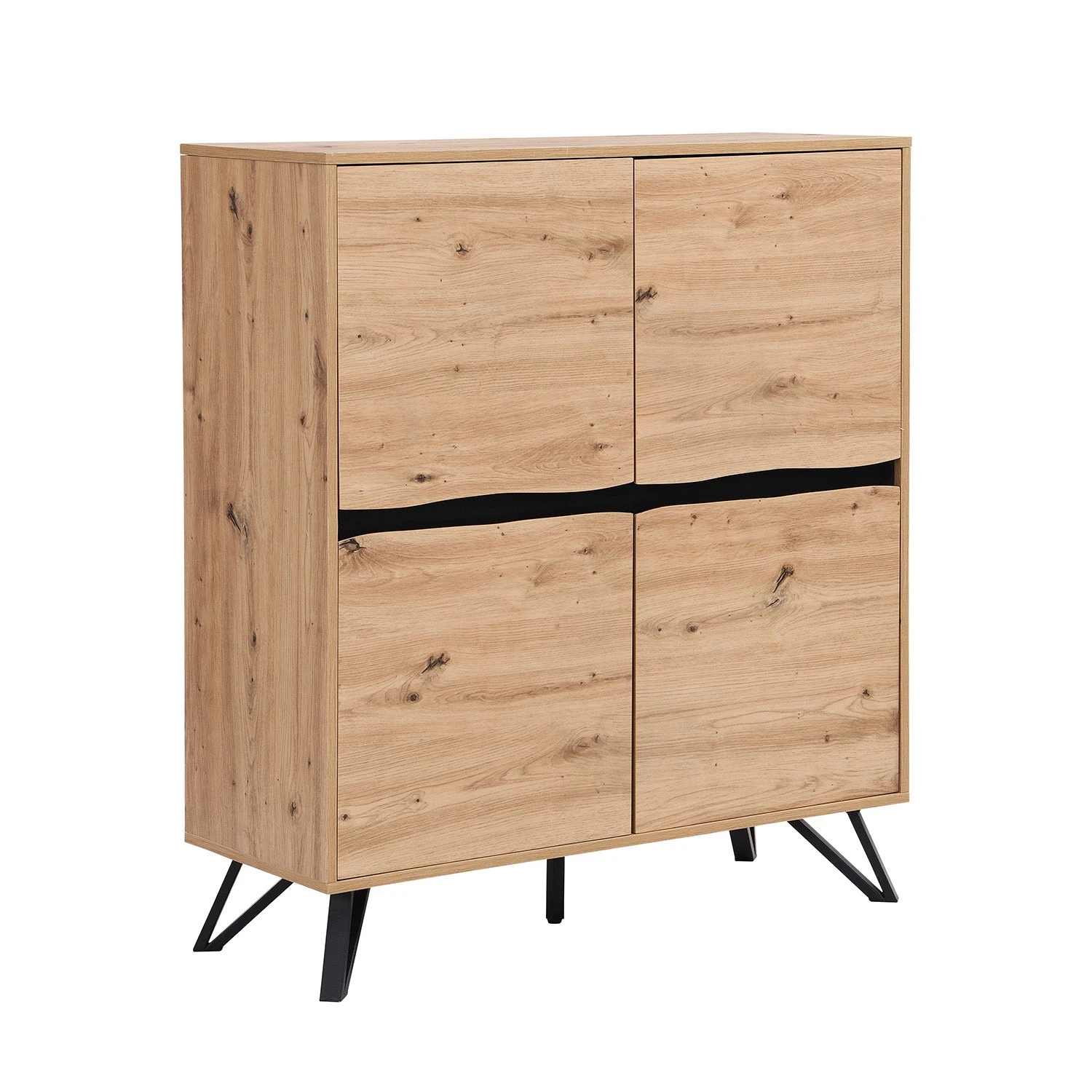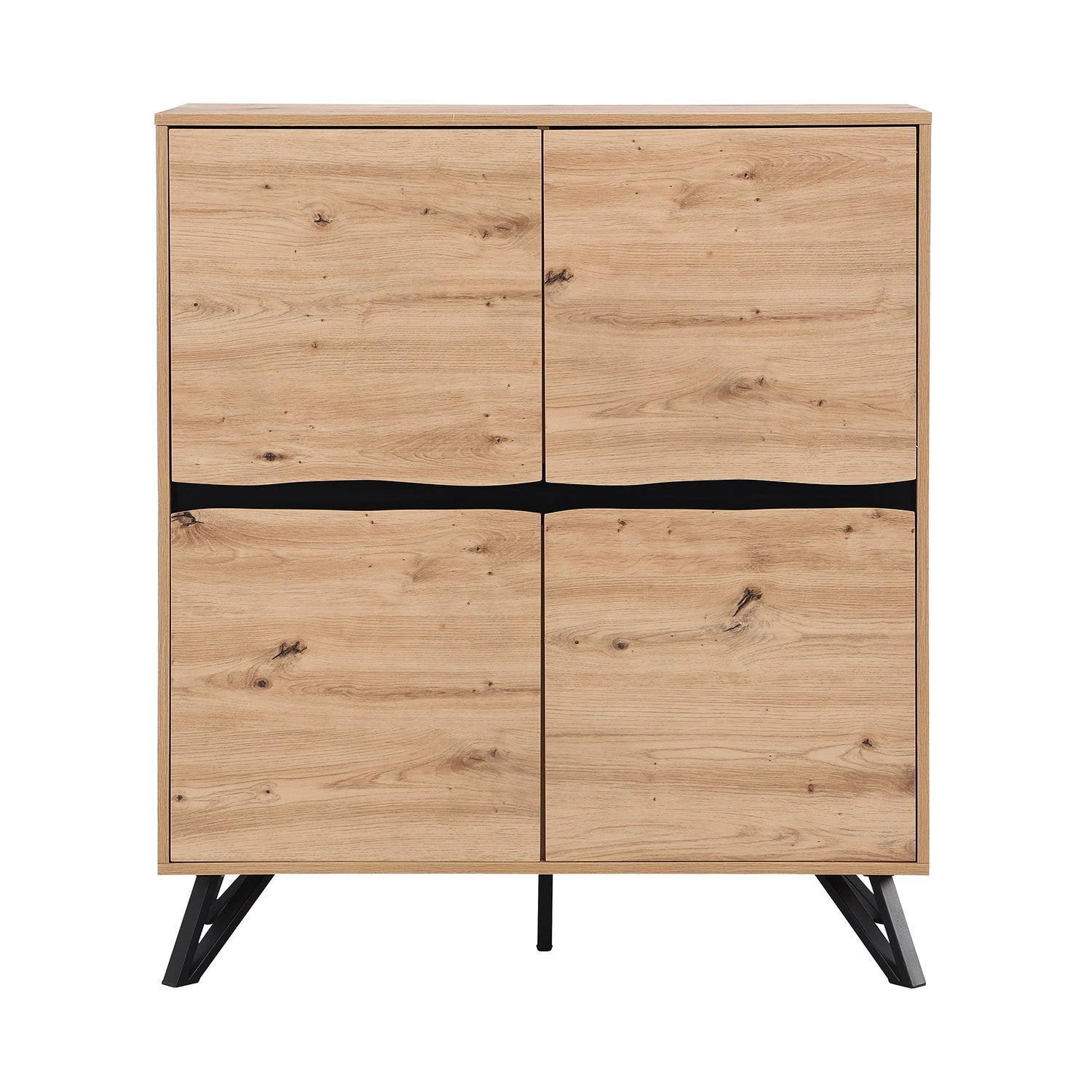 - Inspired by aย modern style and with an oak effect finish, the Weston 4-Door Cabinet can be used anywhere around your home – the perfect simple addition in your lounge, dining room or hallway. The cabinet is further enhanced with solid steel legs in a geometric design.