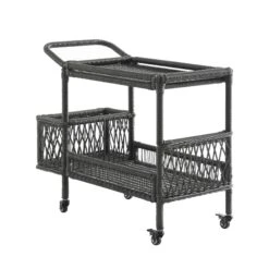 The Willowbrook bar cart trolley is a versatile addition to any home, ideal for serving at outdoor dinner parties or offering stylish storage in a kitchen or dining area. Featuring a sophisticated Dark Grey lattice weave, this piece combines rustic charm with modern durability.